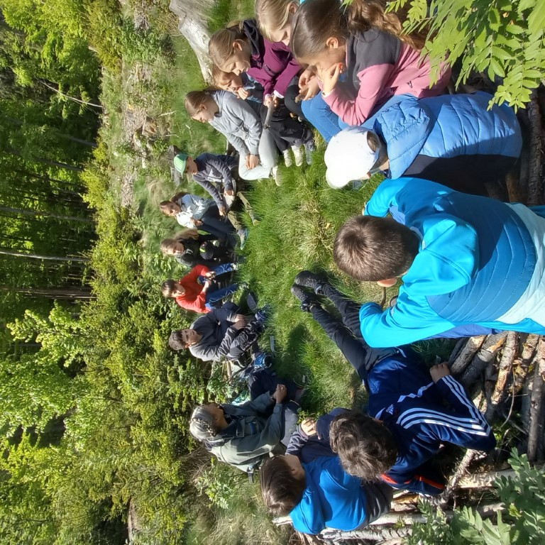 Nach einem ca. 3 km steil bergauf führenden Weg zur Pulswinkelhütte lernte ein Teil der Klasse, welche Bäume in den heimischen Wäldern wachsen und woran man diese erkennen kann. Danach wurden in einem abgeholzten Waldstück 100 Kirschbäume und Linden gesetzt. Die andere Gruppe bekam von der Försterin viele interessante Einblicke in das Leben im Wald und baute Vogelnester.