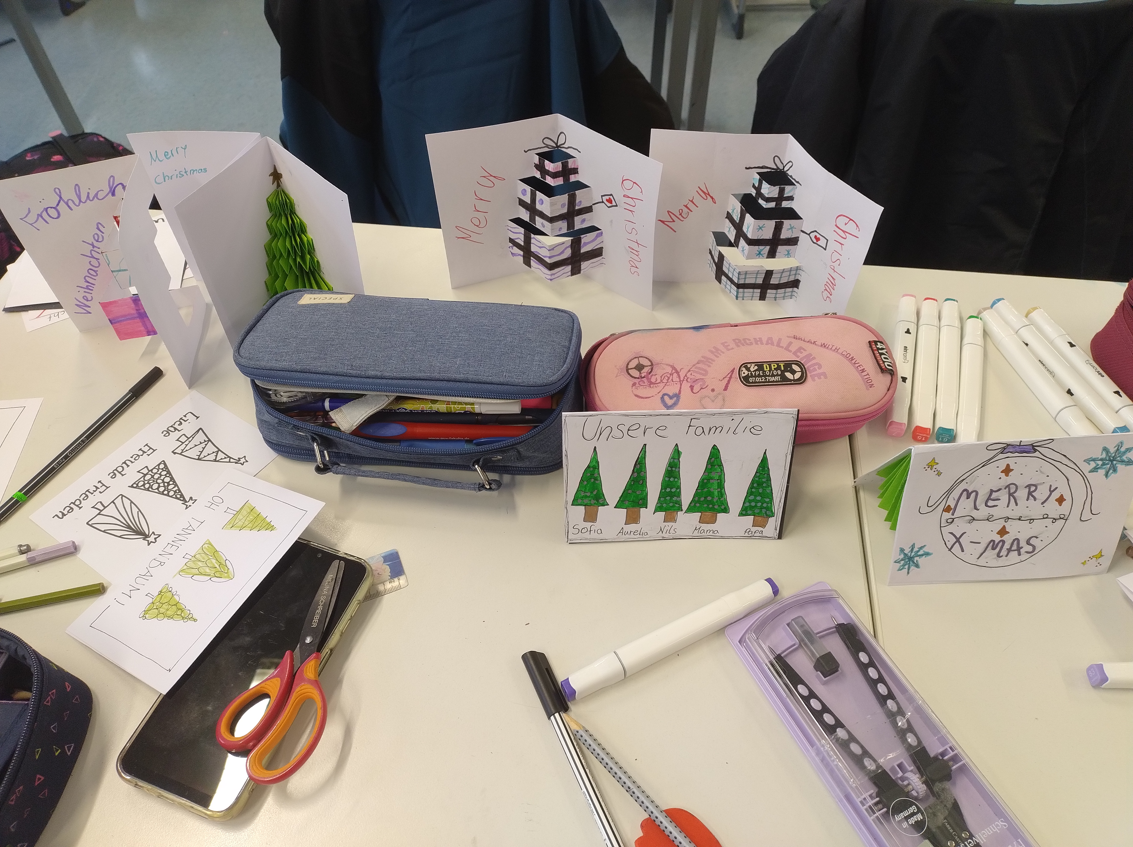 Die Weihnachtswichtel der Klasse 5 C haben fleißig Weihnachtskarten im Kunstunterricht gestaltet.